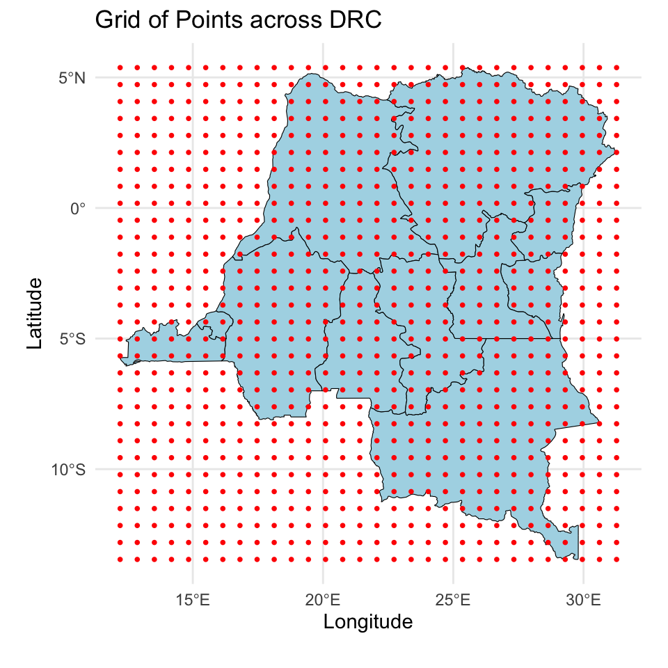 labs(title = "Grid of Points across DRC",