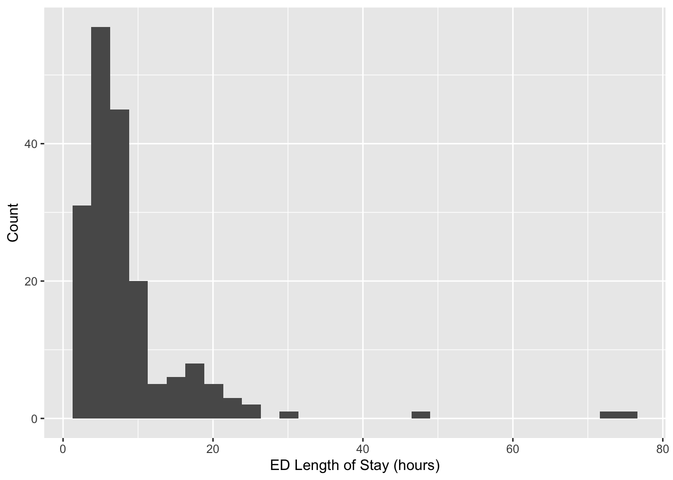 ed_los <- readRDS("ed_los.rds")ggplot(ed_los, aes(x = los)) +