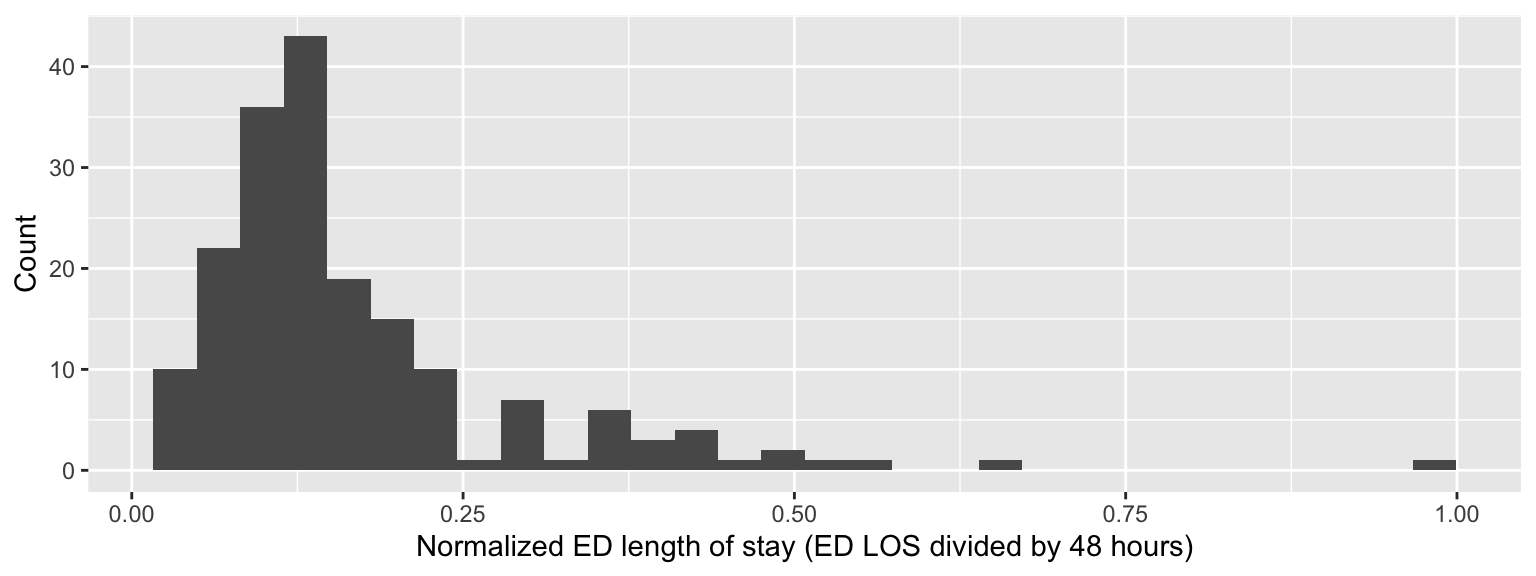 labs(x = "Normalized ED length of stay (ED LOS divided by 48 hours)",