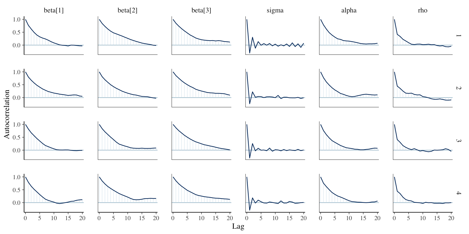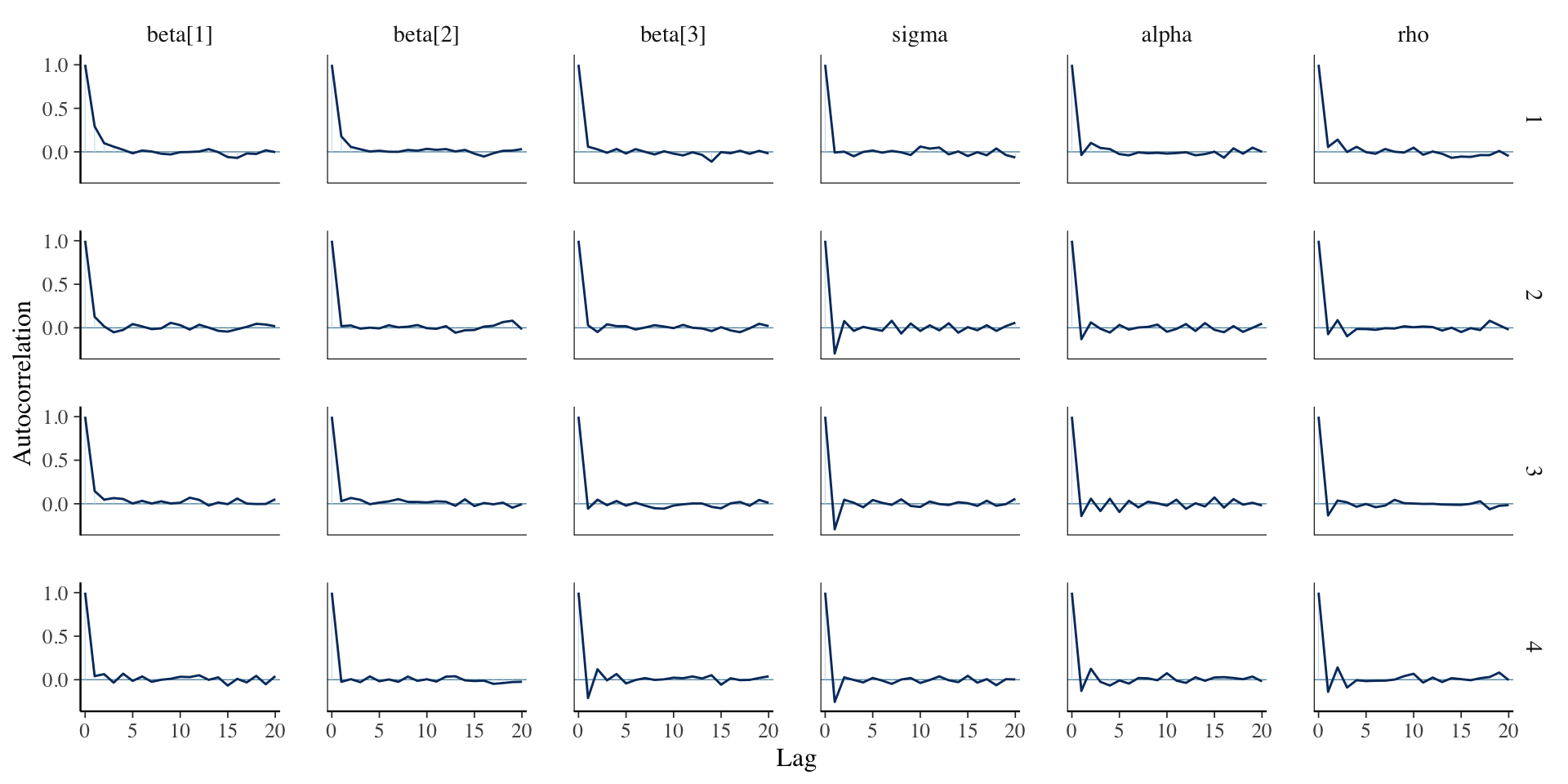 bayesplot::mcmc_acf(gp_marginal_fit, regex_pars = c("beta", "sigma", "alpha", "rho"))