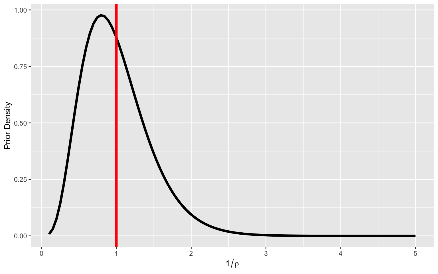 • When you have longitudinal data, there are theoretical justifications for using \(\rho^{-1} \sim Gamma(5,5)\).
